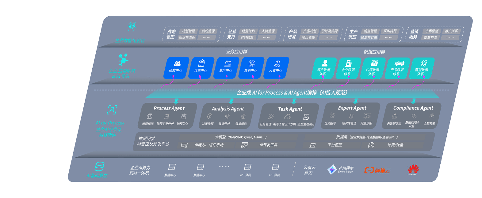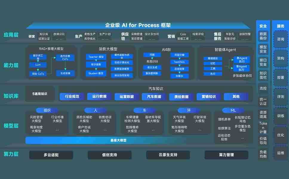 端到端的一站式AI工作空间深度融合了从企业战略规划到日常经营的全流程业务板块,,,定向解决车企内部领域多、、部门多、、、、链条长、、、、场景碎片化等难题,,,支持车企快速构建以AI为核心的生产力写作体系,,,实现任务执行与AI能力的无缝集成与交互